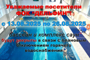 с 13 августа по 26 августа в ФОК «Дельфин» бассейн и комплекс саун будут закрыты